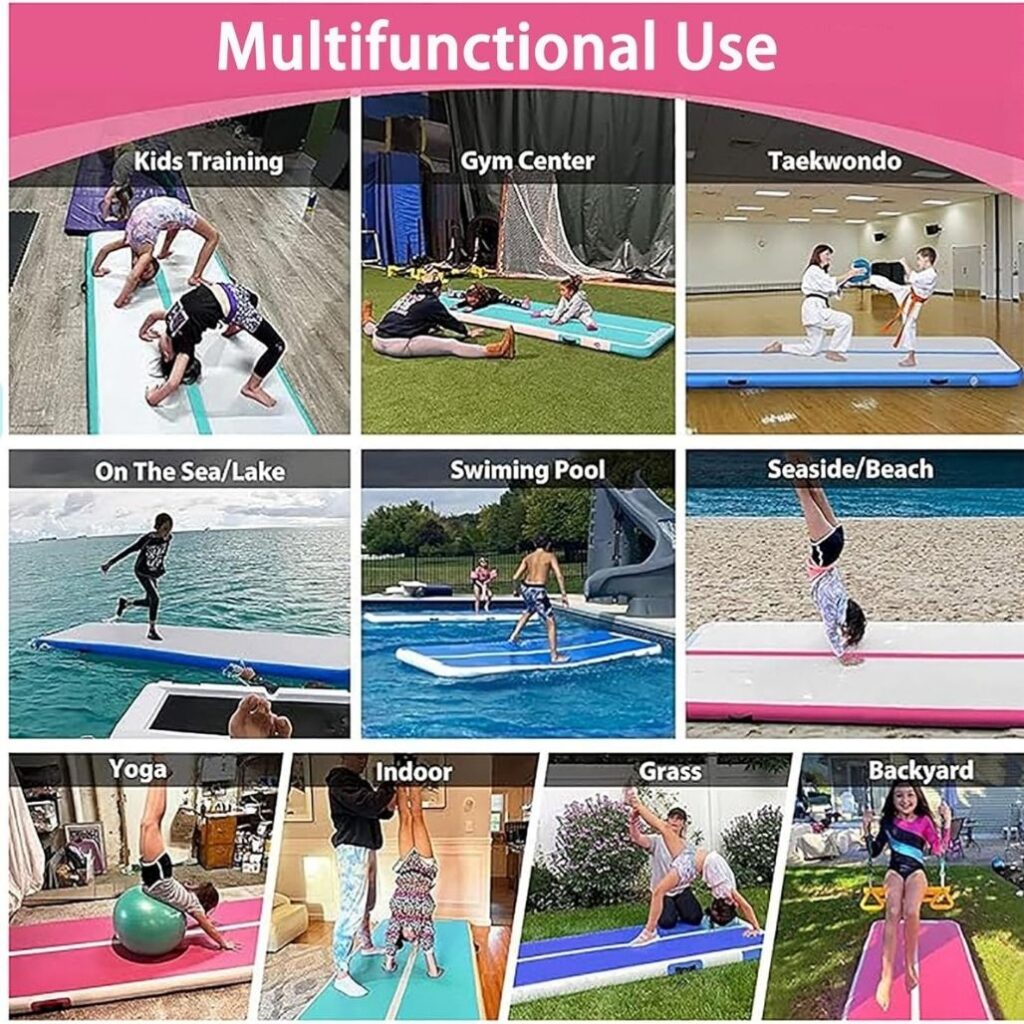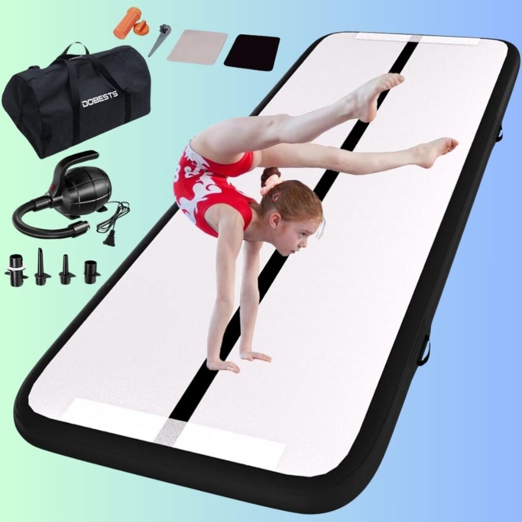 DOBESTS Inflatable Air Gymnastics Mat Tumbling Mat Tumble Track Gymnastics Training for Kids Home 6.6 feet 10 feet 13feet 16feet 20feet 4/8inch Thick for Cheerleading Dance Yoga Cheer Water With Pump