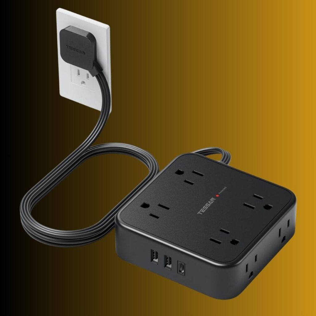 TESSAN Surge Protector Flat Plug Power Strip, Black Extension Cord, 8 AC Outlets, 3 USB Charger(1 USB C Port) 3 Side Outlet Extender, 5 Ft, 900 Joules Protection, Office Supplies, Dorm Essentials