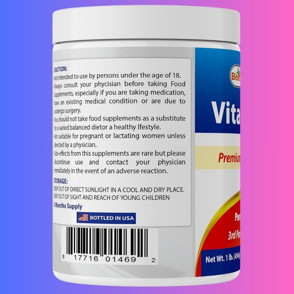 Best Naturals 100% Pure Vitamin C Powder 1 lb (454 Grams) Powder (Also Called Ascorbic Acid)