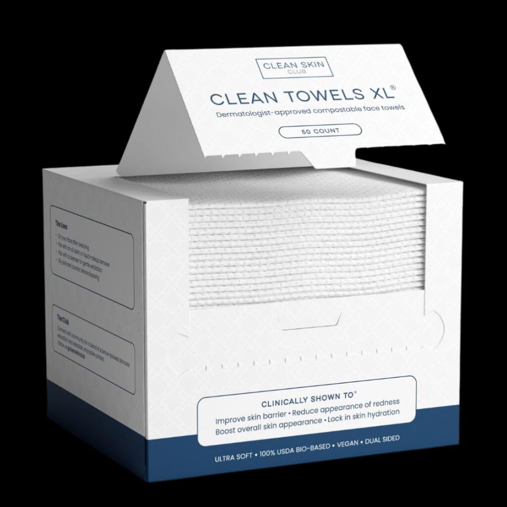 Clean Skin Club Clean Towels XL® – 100% Biobased Disposable Face Towels for Clearer, Healthier Skin