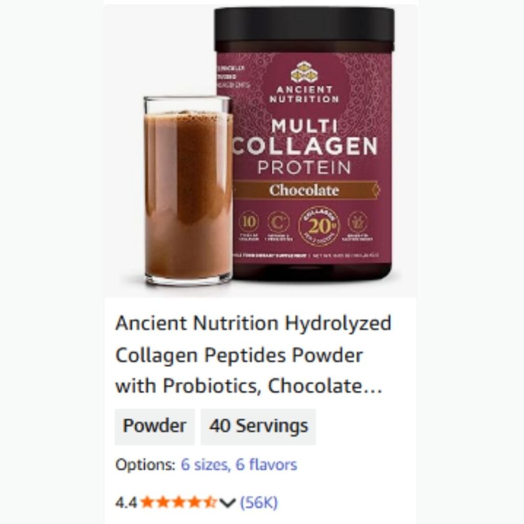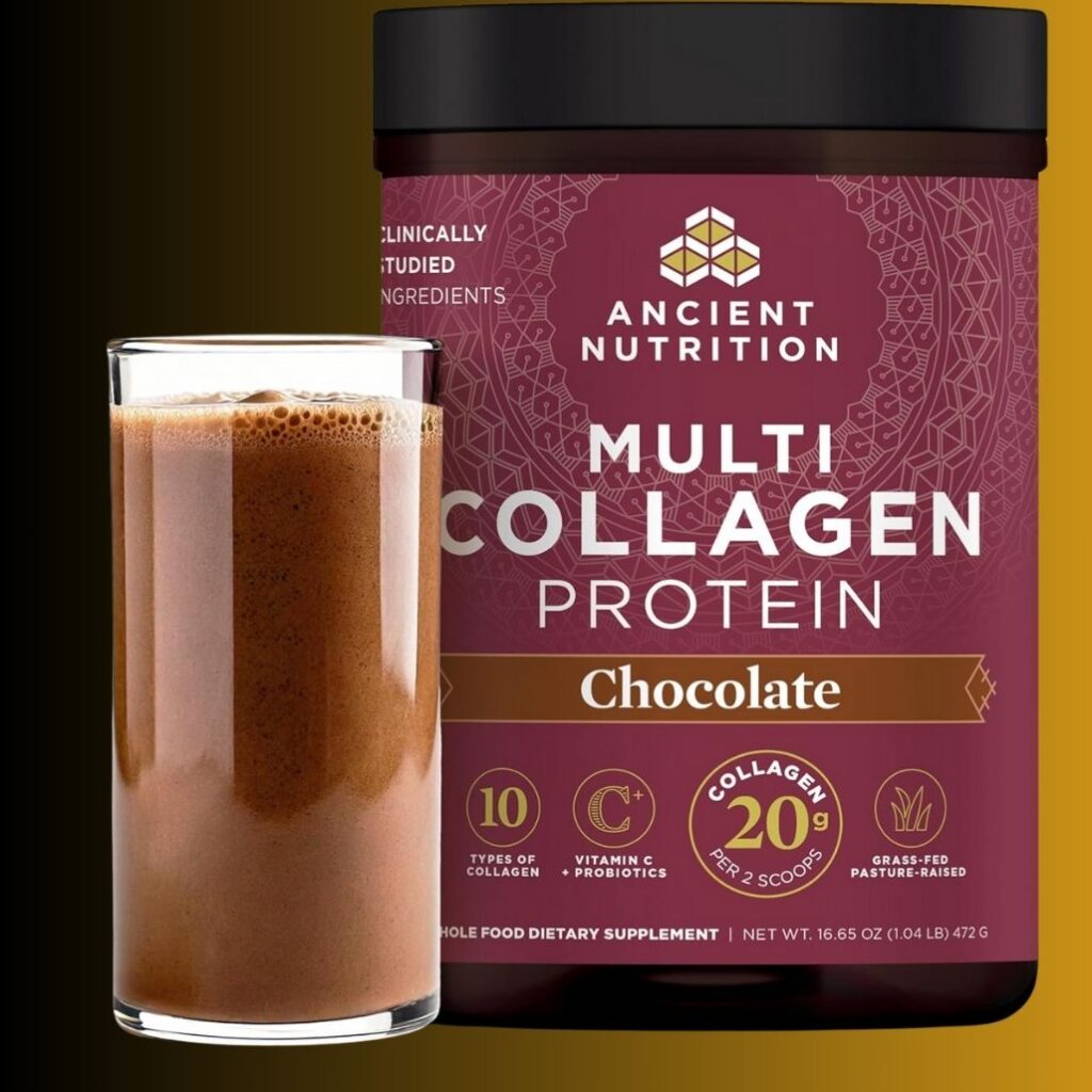 “Ancient Nutrition Multi Collagen Protein Powder – Chocolate Flavor with Probiotics & Vitamin C for Radiant Skin, Strong Nails, and Gut Health”